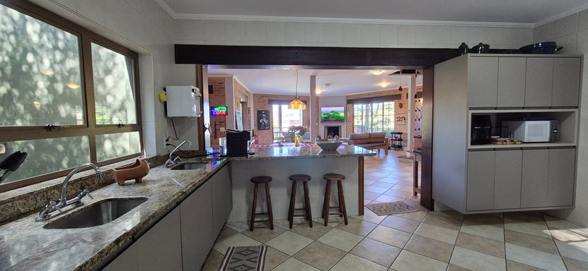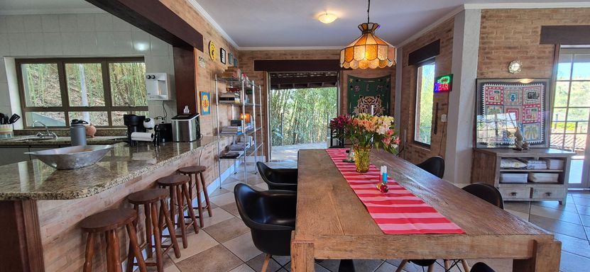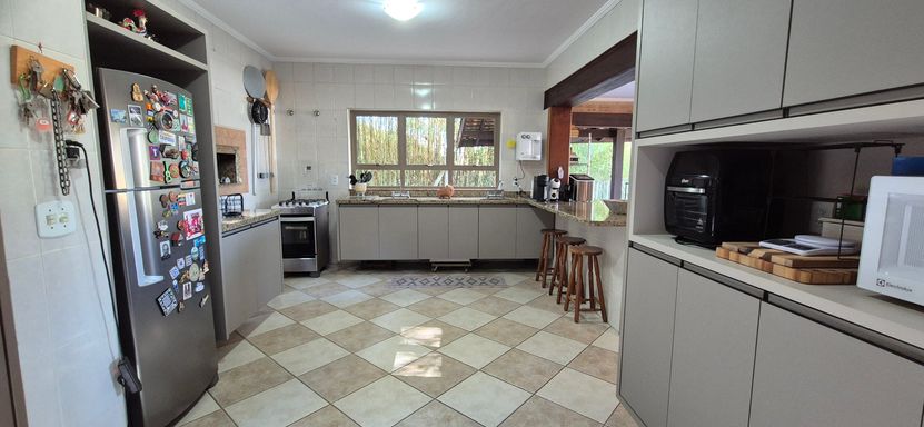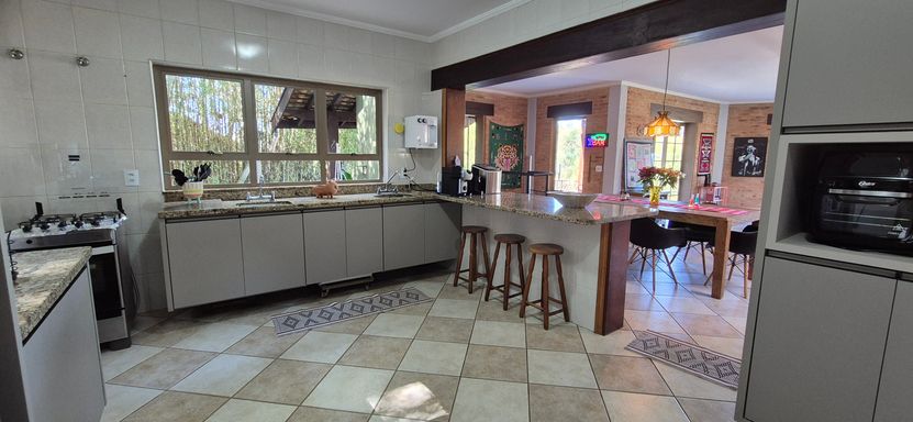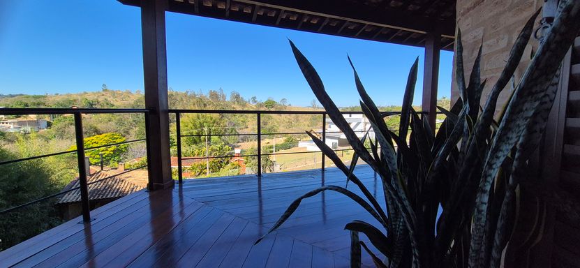 Na área externa, o destaque vai para a vista inspiradora, amplo gramado, área com churrasqueira, forno de pizza e fogão/forno à lenha, ideais para momentos de lazer e relaxamento.